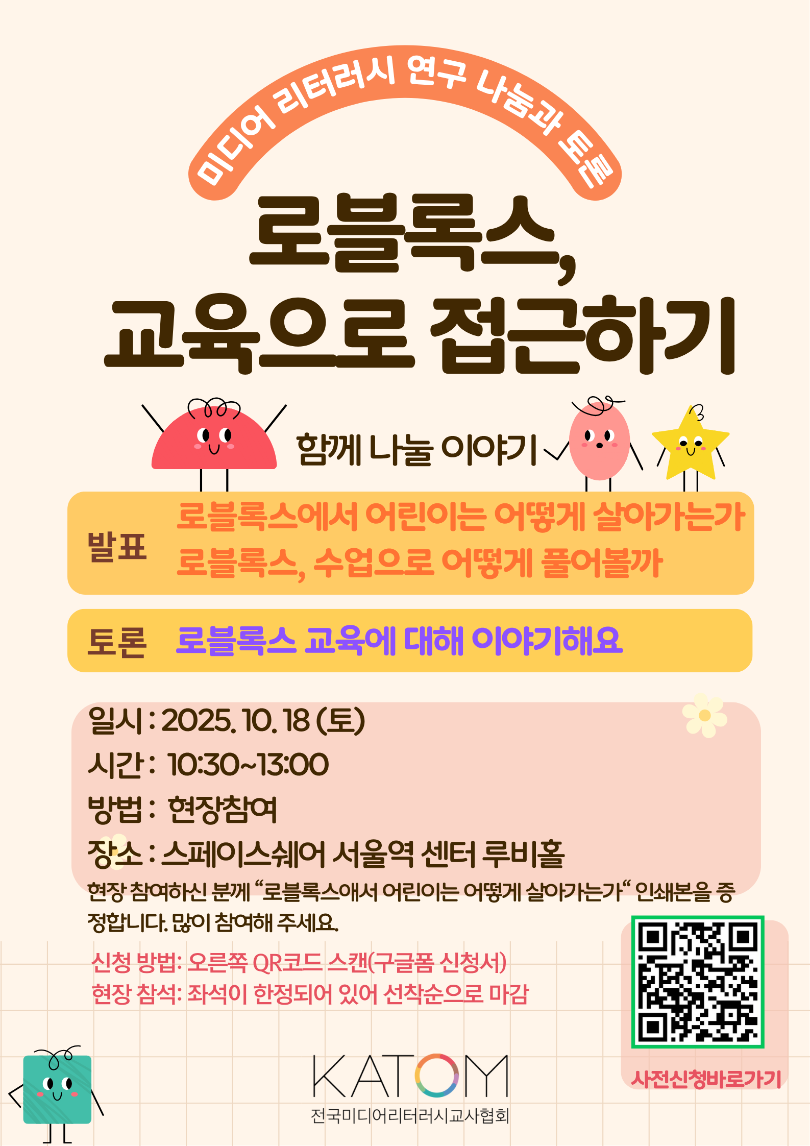 미디어리터러시 연구 나눔과 토론 '로블록스, 교육으로 접근하기' 개최 안내