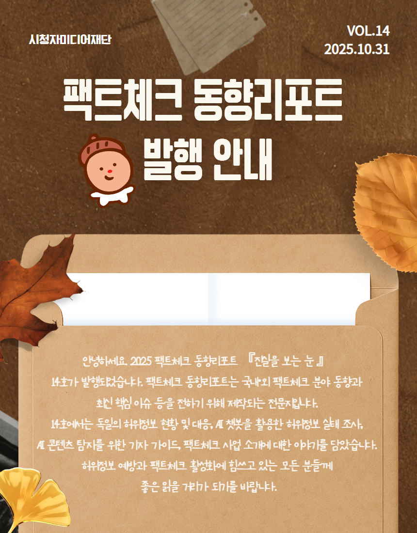 안녕하세요. 2025 팩트체크 동향리포트 『진실을 보는 눈』 14호가 발행되었습니다.