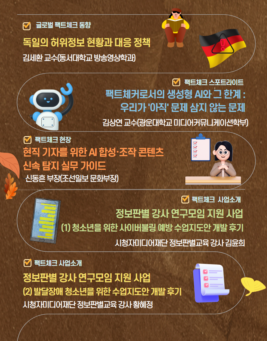 AI 콘텐츠 탐지를 위한 기자 가이드, 재단의 팩트체크 사업 소개에 대한 이야기를 담았습니다.